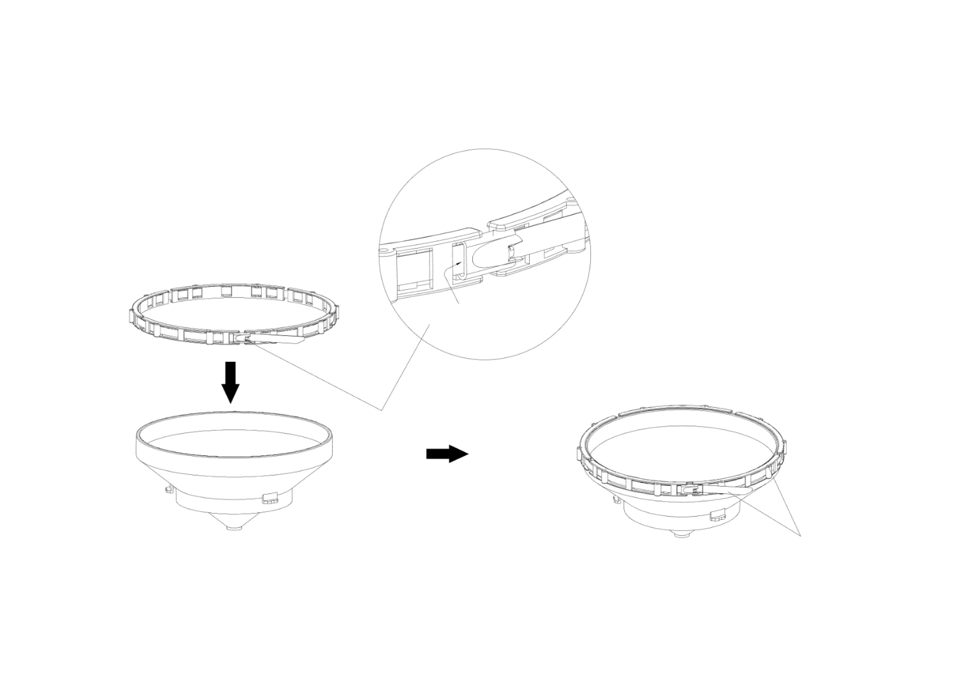 1. Attach the Spike Holders to the Rain Cup: Wrap the zip tie around the rim of the rain cup and tighten it securely to prevent the spike holders from loosening or falling off. For easier installation, it is recommended to first remove the rain cup by twisting it lightly before attaching the spike holders.