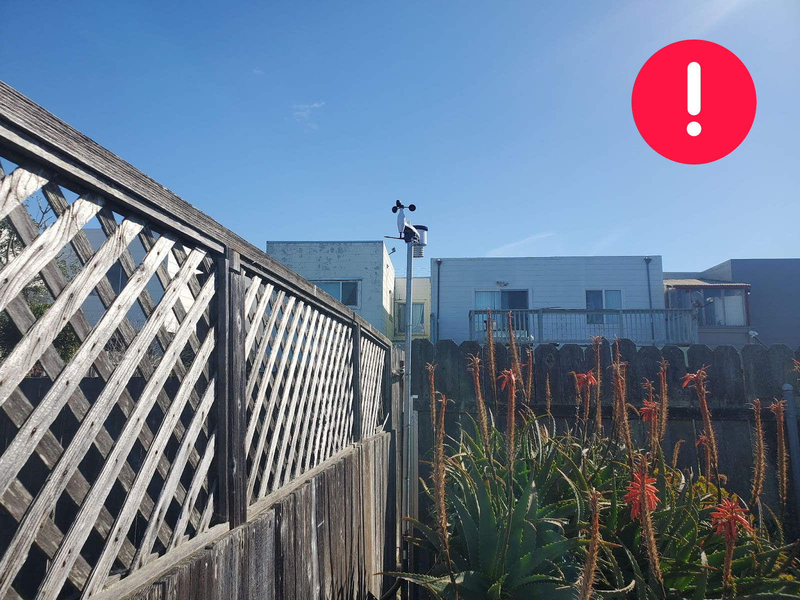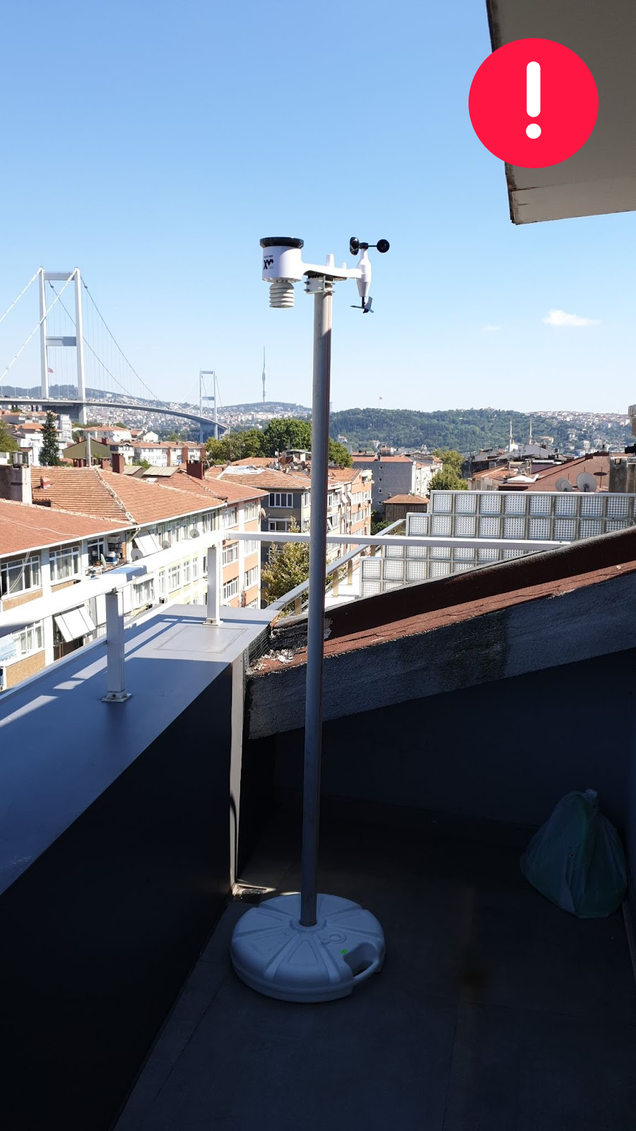 The station is deployed on a balcony with a wall and a roof being fairly close (to the west).