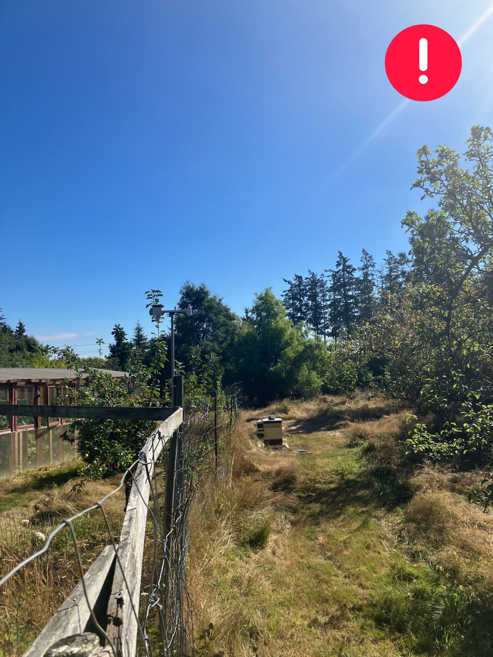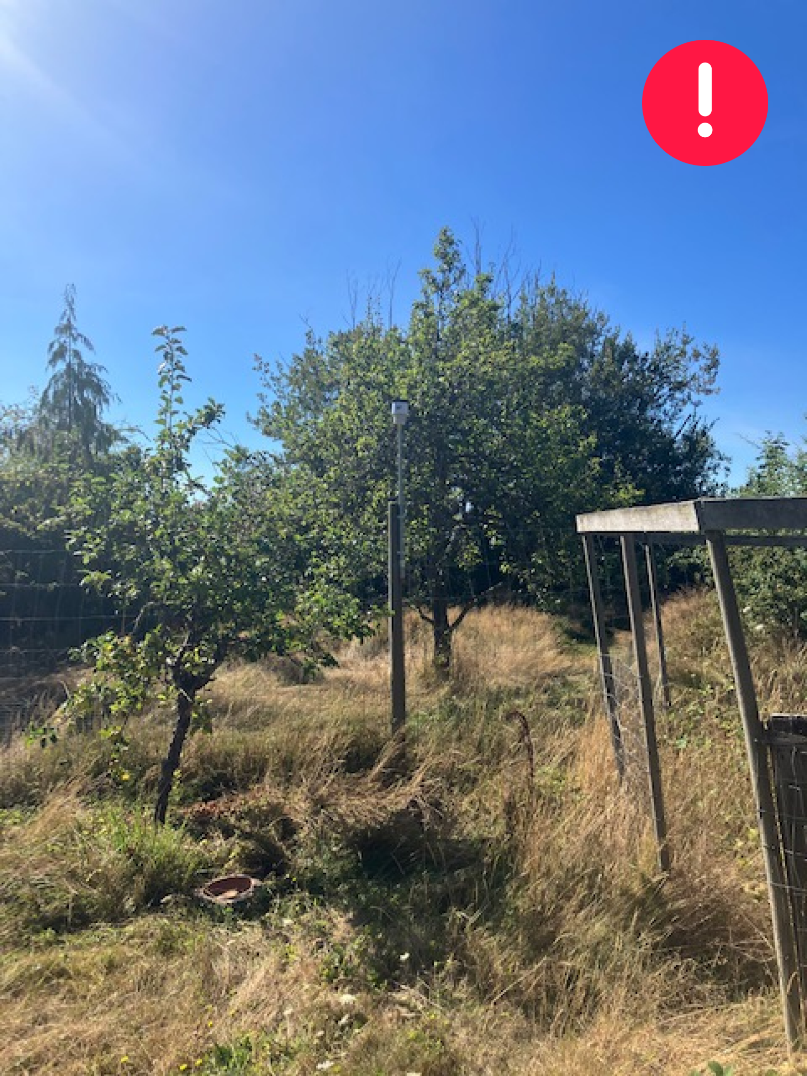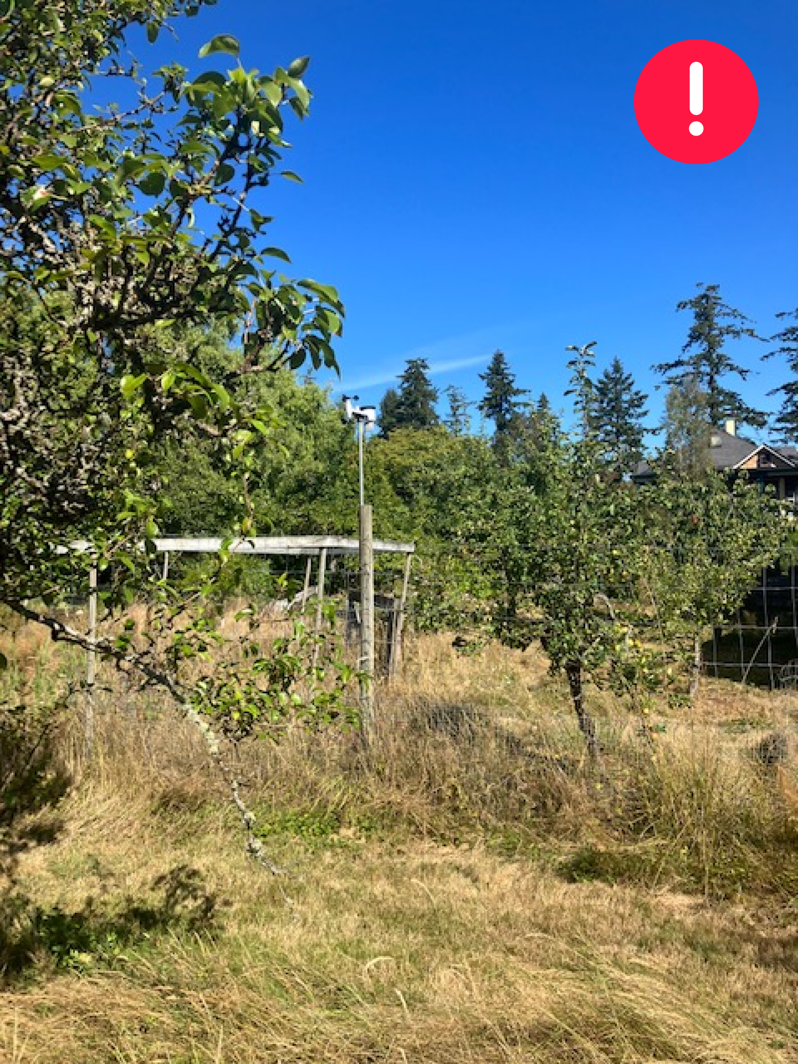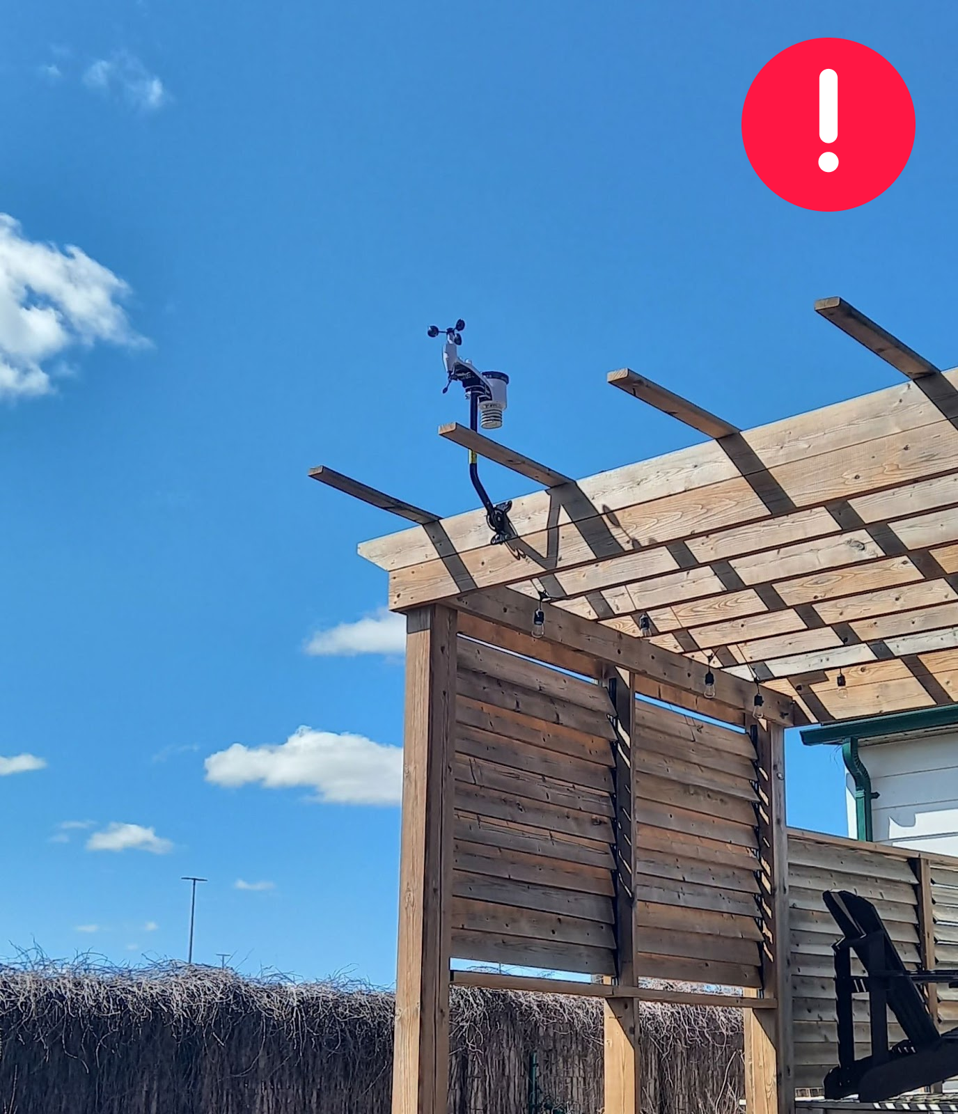 The outdoor sensor should be placed on a higher mast (at least a 2m one) over the wooden structure. If there are higher buildings etc around, the sensor should be moved at the highest possible point (always using a at least 2m mast).