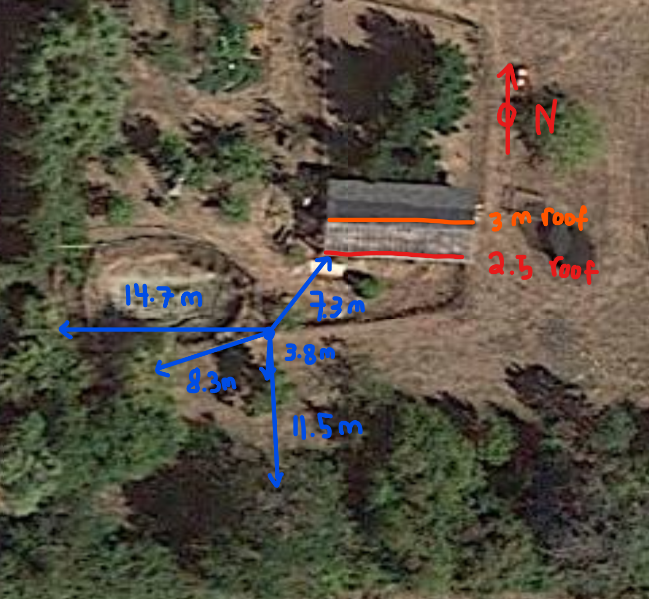 The station is placed just a few tens of centimetres over a wooden structure. From this photo it is unknown if there are any obstacles at the north-east-south.
