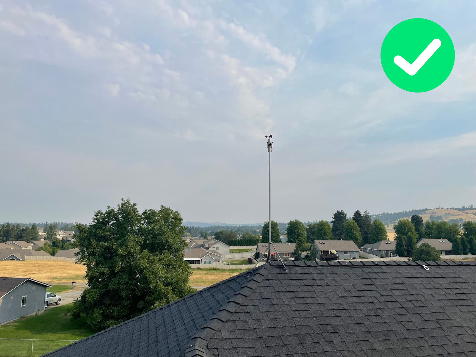 The user moved the outdoor sensor higher by ~1m increasing the distance-height ratio (distance from obstacle/ height of obstacle-height of outdoor sensor) from 2 to 3. In such a case there’s no better solution than that. Ideally, the mast should be 4-6m above the roof, but the maintenance may not be a safe job.